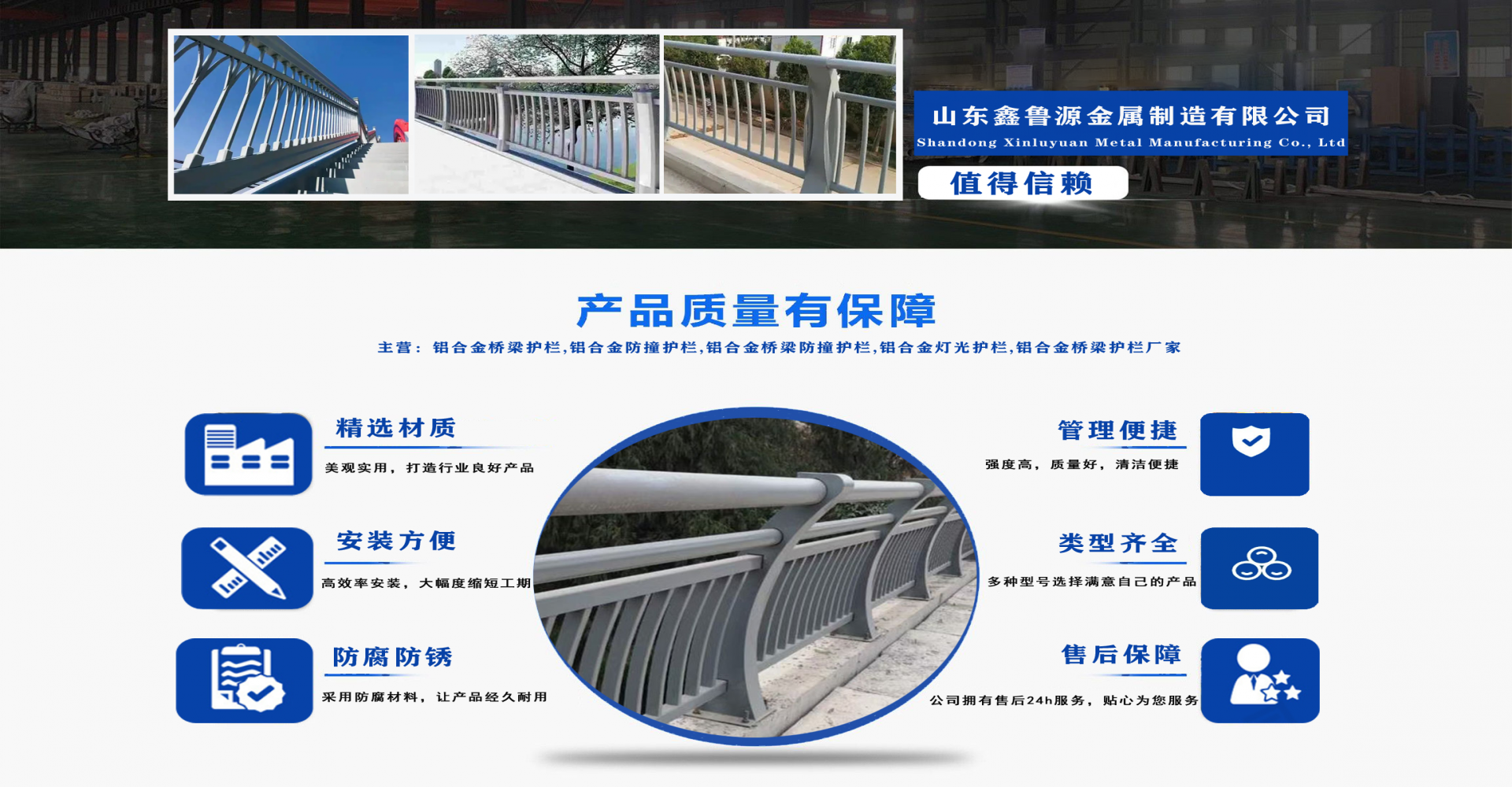 山東鑫魯源金屬制造有限公司主要經(jīng)營:鋁合金橋梁護(hù)欄,鋁合金防撞護(hù)欄,鋁合金橋梁防撞護(hù)欄,鋁合金燈光護(hù)欄,不鋁合金橋梁護(hù)欄廠家,環(huán)波梁橋梁護(hù)欄,環(huán)波梁防撞護(hù)欄。質(zhì)量可靠、經(jīng)濟(jì)實(shí)用的顯著特點(diǎn)。公司為客戶提供可靠售后保障,堅持“以品質(zhì)立足、服務(wù)求發(fā)展”,愿與各界朋友精誠合作、攜手發(fā)展! 服務(wù)優(yōu)勢:真誠的服務(wù)理念、完善的服務(wù)體系。公司專業(yè)力量充足;工程案例眾多、從業(yè)經(jīng)驗(yàn)豐富;公司以可靠質(zhì)量的產(chǎn)品,合理的價格,完善的售后服務(wù),能夠滿足市場各個企業(yè)的需求?! ∑髽I(yè)精神:執(zhí)著追求 持續(xù)創(chuàng)新執(zhí)著追求,就是堅持不懈、堅定從容,專注于自己的事業(yè),把能做的事情做好,不斷克服困難、把握機(jī)遇,贏得未來。 持續(xù)創(chuàng)新,就是生命不息、創(chuàng)新不止,通過持續(xù)實(shí)施技術(shù)創(chuàng)新、管理創(chuàng)新、市場創(chuàng)新,獲取持續(xù)的競爭優(yōu)勢。...